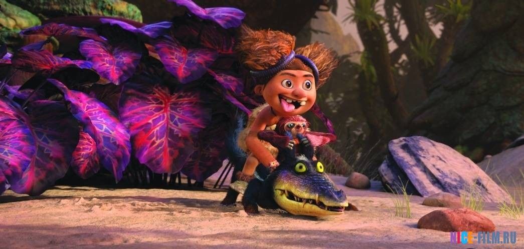 Землетрясение уничтожило дом доисторической семьи, и теперь Крудсам придётся искать другое пристанище. А вокруг новый и опасный мир! Им на помощь приходит молодой кочевник Малой, передовые взгляды которого наталкиваются на консервативность главы семьи Груга. Но только вместе они смогут выжить и достичь своей цели...