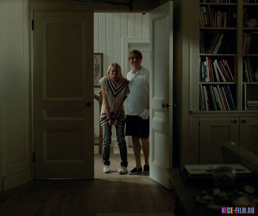 В свой загородный дом на живописном озере приезжают муж, жена и их десятилетний сын. К ним стучатся два милых молодых человека, которые представляются гостями соседей. У обоих на руках белые перчатки. Молодые люди решили позабавиться. Они убивают собаку... и предлагают хозяевам заключить пари - никто из них не доживет до утра... Начнется цепь изощренных издевательств, изысканных пыток, медленного садистского уничтожения семьи.